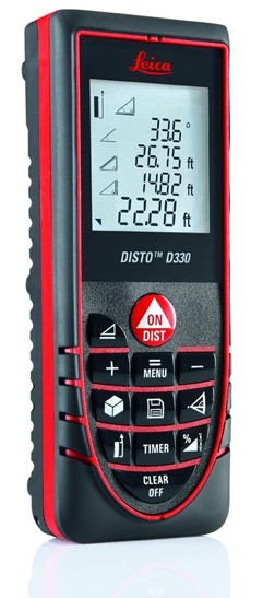 The Leica DISTO D330 can calculate rectangular and triangular areas, volumes, room dimensions and various types of Pythagoras functions. A time delay release and enough memory for up to 20 measurements round off the instrument's wide range of functions - a concept designed to make your work life easier.