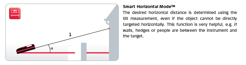 Thanks to the combination of distance and tilt measurements, you can determine the horizontal distance precisely - even over obstructions. This function is very helpful if